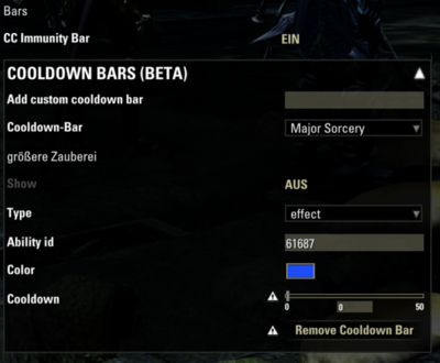 You can create cooldown bars for effects and abilities. Here’s an example for setting one up: