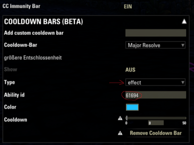 “Größere Entschlossenheit” is Major Resolve (in German, of course). You’ll see the ID, start time, and end time of the effect. Just remember the ID: 61694.