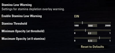 Full-Screen Stamina Warning: Critical visual overlay alerts when stamina drops below configured threshold